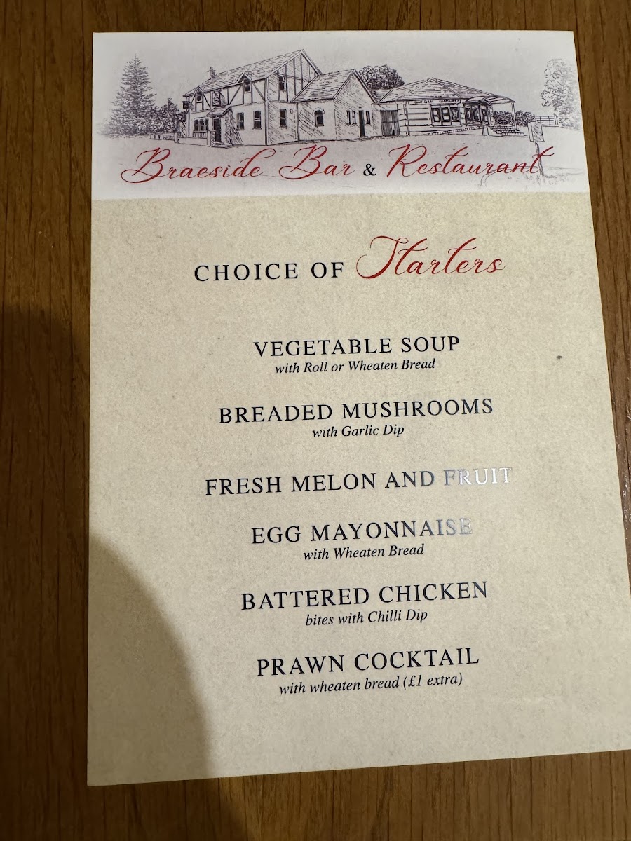 The menu at Braeside Bar & Restaurant offers a comfortable, casual dining experience built around familiar favourites and well-crafted drinks. It’s the kind of place where you can enjoy comforting plates from midday through evening, whether you’re dropping in for a relaxed lunch or settling down for a hearty dinner.